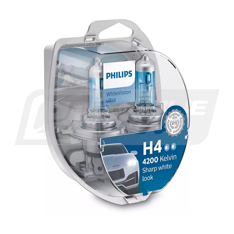 Автомобильные лампы Philips WhiteVision Ultra H4 со специальным покрытием и цветовой температурой 4200 К гарантируют превосходное освещение в любых условиях. Это самые яркие галогенные лампы с белым светом для дорог общей сети в нашем ассортименте. Кроме того, они придают автомобилю стильный внешний вид.